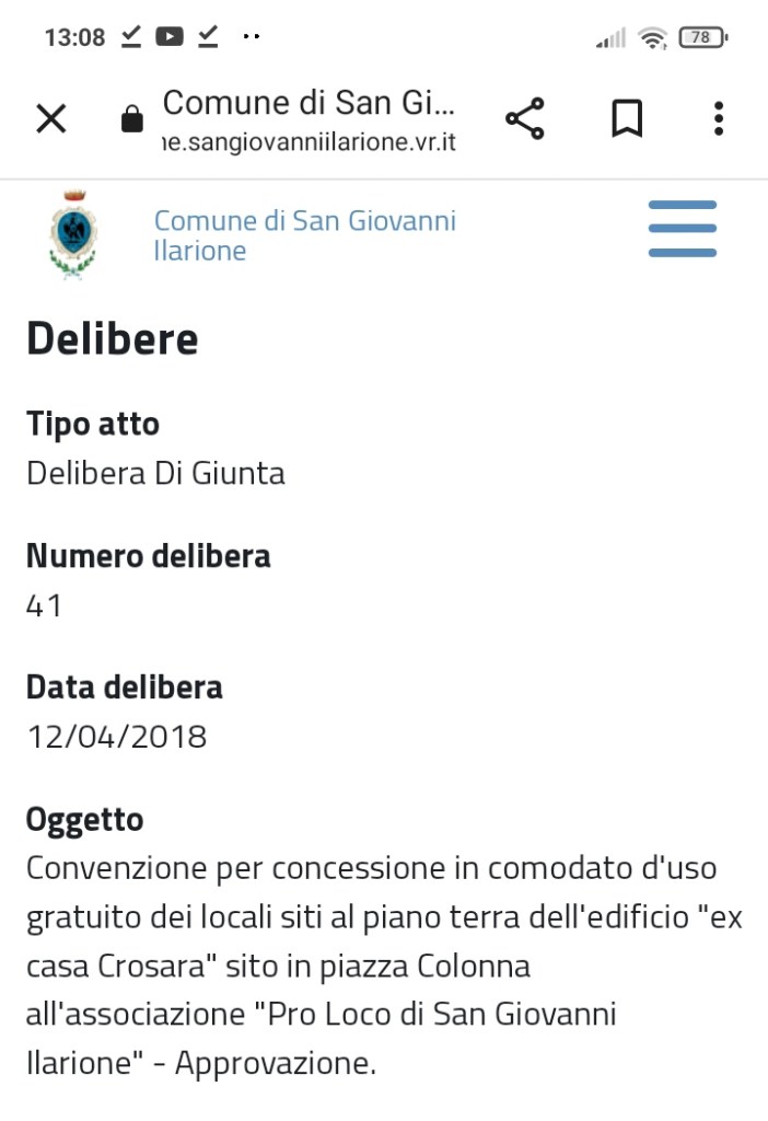 giorno della stipula della convenzione”. A Presenzano però non c’è nessun edificio denominato “ex casa Crosara” e sito “in piazza Colonna”, toponimo inesistente. Trattasi, ovviamente, di copia e sbadataggine, nel senso che l’autore della scopiazzatura ha dimenticato di cancellare i riferimenti originali. Basta una breve ricerca su Google per trovare il documento “plagiato”: si tratta della convenzione tra Pro loco e Comune di San Giovanni Ilarione, in provincia di Verona, risalente al 2018. Presenzano sarà stato trasferito in Veneto e non ce ne siamo accorti?