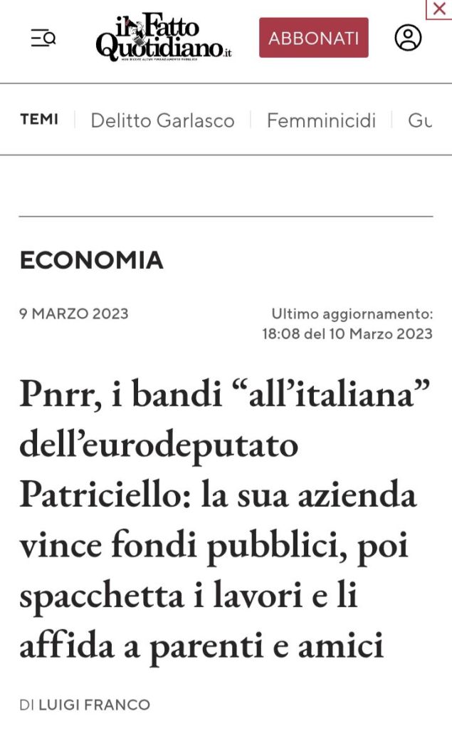 Nel marzo 2023, il Fatto Quotidiano aveva acceso i riflettori su un caso emblematico: l’eurodeputato Aldo Patriciello, imprenditore e politico di lungo corso, era finito sotto osservazione per un progetto finanziato con oltre 24 milioni di euro del PNRR, destinato all’Istituto Neuromed.